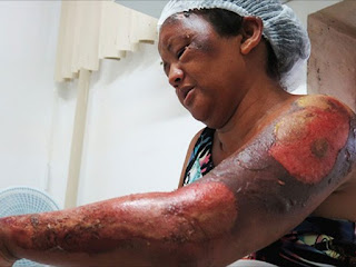 queimaduras pelos corpos após bandidos atearem fogo na casa delas na cidade de