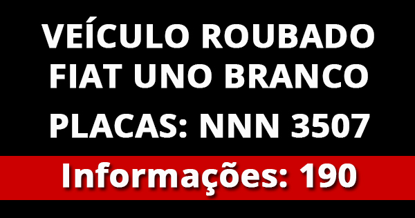 Os bandidos roubaram um automóvel Fiat Uno, branco, de placas NNN 3507.