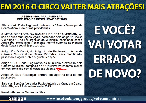 o aumento do picadeiro. Em 2016, 15 vereadores serão eleitos. Enquanto isso, em