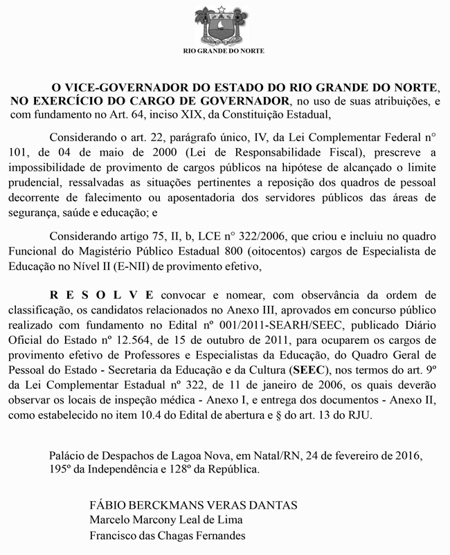 Um dia depois da aprovação do reajuste anual do magistério em 11,36%, o Diário Oficial desta quinta-feira (25), trás o ato de convocação e nomeação dos professores e especialistas em educação aprovados no concurso de 2011.