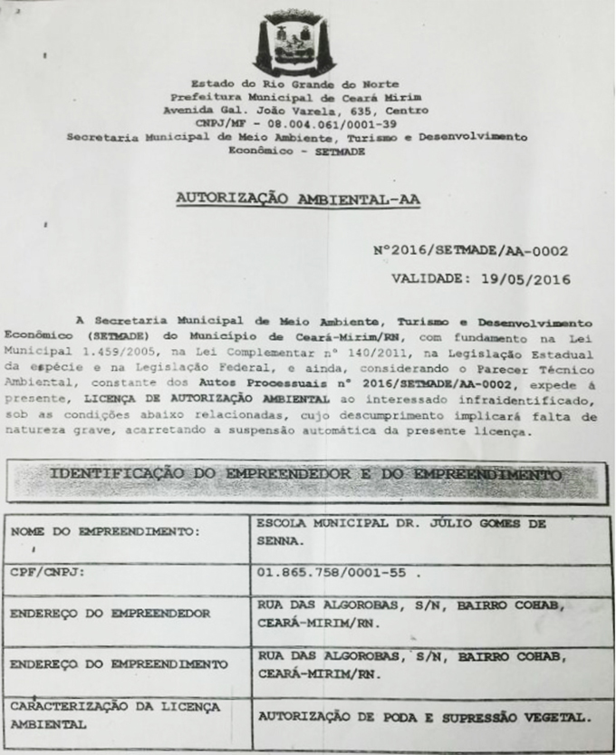 Pois é, prezados leitores! Embora o secretário NETO COUTINHO tenha mentido ao afirmar que não havia autorização, um documento da secretaria do meio ambiente, assinada pelo PRÓPRIO secretário no dia 19 de abril, é prova cabal de que o Secretário NETO COUTINHO AUTORIZOU A DERRUBADA DAS ÁRVORES!