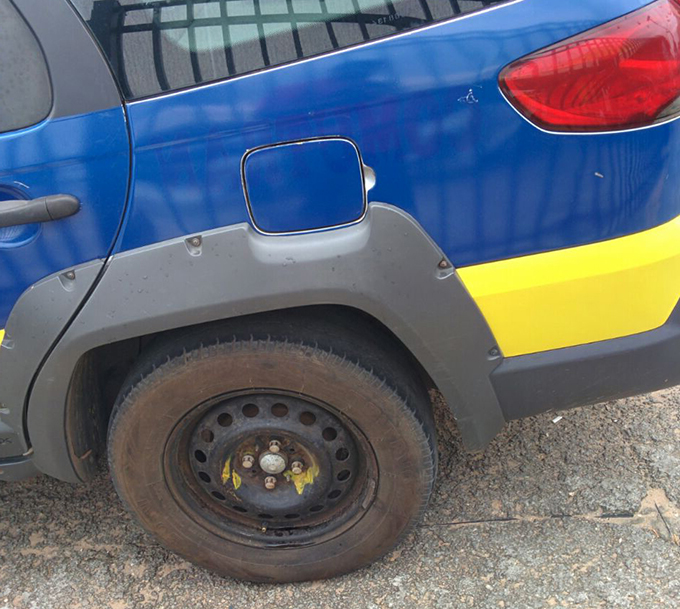 leitor do Blog do Gordo nos enviou uma foto mostrando o estado do pneu da